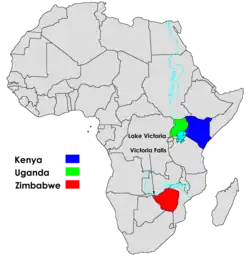 Les trois nations historiques sont le Kenya, l'Ouganda et le Zimbabwe. Le nom de Victoria fait référence au lac Victoria et aux chutes Victoria bordant ces trois pays, les deux étant baptisés en hommage à la reine Victoria.
