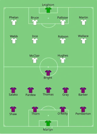 (1 – 1) | Spectateurs : 78 000 Arbitrage : Allan Gunn | ||||||||||||||||||||||||||||||||||||||||||||||||||||||||||||||||||||||||||||||||||||||||||||||||||||||||||||||||||||||||||||||||||||||||||||||||||||||||||||||||