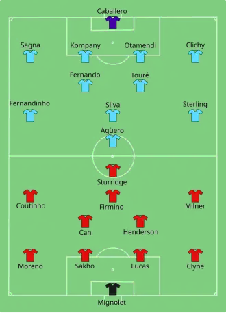 | Lallana Can Benteke Firmino Milner Lucas Allen | Tirs au but 6 - 5 | Walters Crouch Whelan Afellay Shaqiri van Ginkel Muniesa | |||