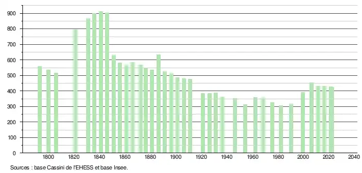 - ↑ Fiches Insee - Populations de référence de la commune pour les années 2006, 2007, 2008, 2009, 2010, 2011, 2012, 2013, 2014, 2015, 2016, 2017, 2018, 2019, 2020, 2021 et 2022.
