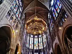 Couronne de lumières polylobée (inaugurée en 1868), cathédrale de Bourges- Lustre en forme de couronne à 12 lobes (1887), Sts-Pierre-et-Paul de Wissembourg