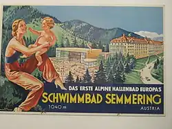 La route passe au bas de l'Hôtel Panhans (lui à 1040 mètres) et de sa piscine publique (illustration de 1932).