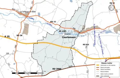 Carte de la commune de Courtemaux et des communes limitrophes.