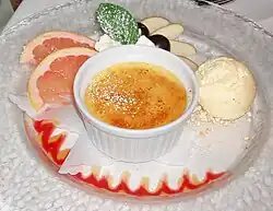 La crème brûlée, ou crème brulée[1], est un dessert composé de jaunes d'œufs, de sucre, de crème, de vanille et de caramel.