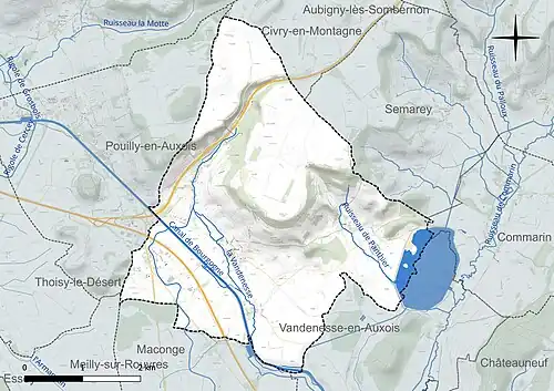 Les communes limitrophes sont Civry-en-Montagne, Commarin, Maconge, Meilly-sur-Rouvres, Pouilly-en-Auxois, Semarey et Vandenesse-en-Auxois.