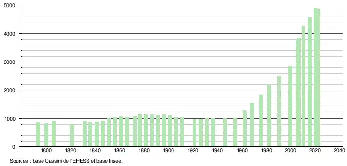 En 2022, la commune comptait 4 863 habitants[Note 3], en évolution de +4,87 % par rapport à 2016 (Gironde : +6,91 %, France hors Mayotte : +2,11 %).