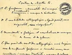 - ↑ Camille Dreyfus, art. « Graphologie » in La grande encyclopédie : inventaire raisonné des sciences, des lettres et des arts par une Société de savants et de gens de lettres, t. XIX, S.A. de la Grande Encyclopédie, Paris, 1902, p. 223.