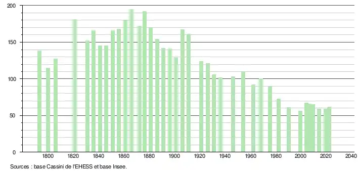 - ↑ Population municipale de référence en vigueur au 1er janvier 2025, millésimée 2022, définie dans les limites territoriales en vigueur au 1er janvier 2024, date de référence statistique : 1er janvier 2022.