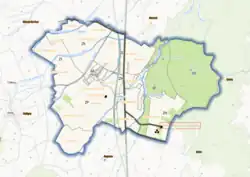 D'après les données Corinne land Cover, le ban communal de 955 hectares, situé à 230 mètres d'altitude, comporte essentiellement des terres arables (29 %) et des prairies (37 %), ainsi que des forêts (30 %) et zones habitées (4 %)[3]. La desserte se fait par la route départementale 12c qui relie le bourg à ses communes voisines et qui a cédé sa place à l'autoroute A31 dans son tracé nord-sud coupant le ban communal en deux parties. (fig. - 1).