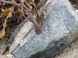 Souvent, lorsque l'algue embryonnaire explore son environnement, elle déploie autour d'elle une multitude de filaments microscopiques incolores, les rhizoïdes. Ces structures allongées sont recouvertes d'une sécrétion riche en polysaccharides qui permettent à l'algue de s'arrimer à son substrat. Une fois fixée, elle renforce son point d'ancrage en fabriquant un véritable ciment et développant son organe, le crampon[2].