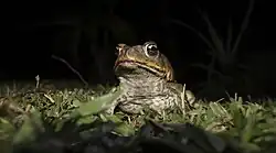 - ↑ (en) Kidera, Tandavanitj, Oh & Nakanishi, « Dietary habits of the introduced cane toad Bufo marinus (Amphibia : Bufonidae) on Ishigakijima, southern Ryukyus, Japan », Pacific Science, vol. 62, no 3, , p. 423-440.