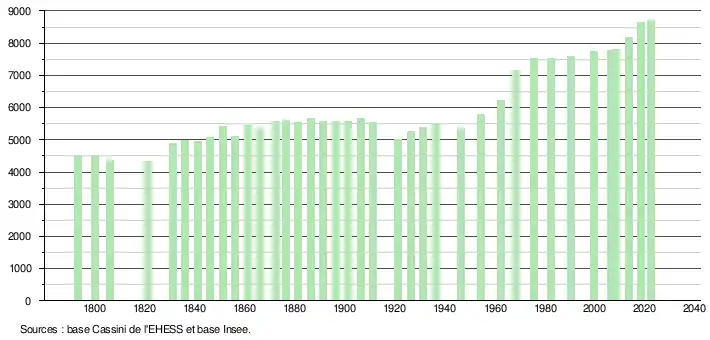 - ↑ Fiches Insee - Populations de référence de la commune pour les années 2006, 2007, 2008, 2009, 2010, 2011, 2012, 2013, 2014, 2015, 2016, 2017, 2018, 2019, 2020, 2021 et 2022.