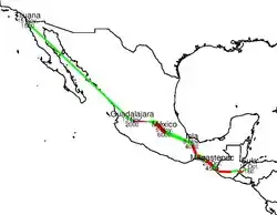 - ↑ « Arrêt temporaire au Mexique », sur lefigaro.fr, (consulté le ).