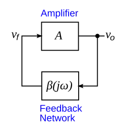 Un amplificateur de gain câblé à une boucle de contre-réaction à fonction de transfert (linéaire) peut se mettre à osciller en continu lorsque les deux conditions suivantes sont remplies[1],[2] :