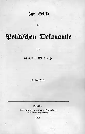 Critique de l'économie politique (Zur Kritik der politischen Ökonomie) est un ouvrage de Karl Marx publié en 1859. Il forme l'ébauche de son principal ouvrage, Le Capital : critique de l'économie politique, dont le premier livre est publié en 1867[1].