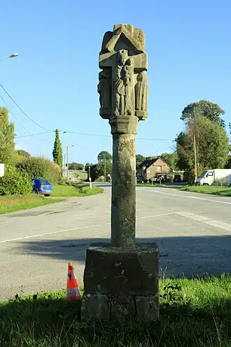 La croix de Landoma, près du lieu-dit « La fourchette », au croisement de la route Départementale 764 et de la rue du stade, sur la commune de Pleugriffet dans le Morbihan[1].