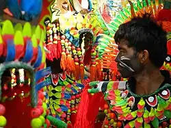 - noix d'arec et vin - les noix d"arec et les vins remplissent d'importantes fonctions rituelles et de camaraderie entre de nombreux groupes ethniques ; ces deux objets sont notamment consommés à la fois par les mortels et les divinités, et dans certains mythes, ils conduisent également à des pactes de paix[29],[30],[31],[32].