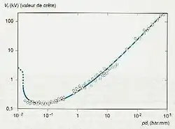 Mais l'inconvénient majeur du bain pompé pour le refroidissement des bobines supraconductrices est que l'on est à basse pression (quelques millibars à quelques dizaines de millibars). La tenue diélectrique de l'hélium est alors très faible, illustrée par la courbe de Paschen (figure 5).