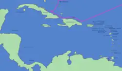 Cuba, en forme longue la république de Cuba[4] (en espagnol : República de Cuba), est un État insulaire des Caraïbes formé de l'île de Cuba (la plus grande île des Antilles), de l'île de la Jeunesse (appelée île aux Pins jusqu'en 1978) et de 4 095 cayes et îlots[5],[6],[7]. Il est situé dans l'ouest des Grandes Antilles, à la confluence de la mer des Caraïbes, du golfe du Mexique et de l'océan Atlantique ; au nord-est des îles Caïmans ; au nord-ouest de la Jamaïque ; à l'est du Mexique (Yucatán) ; au sud-est de la péninsule de Floride ; au sud-ouest des Bahamas ; à l'ouest d'Haïti et des îles Turques-et-Caïques.