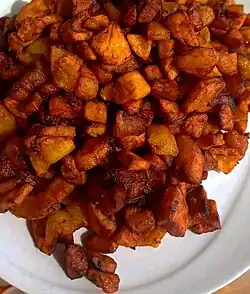 - Ahayué: tout petits morceaux de banane plantain, frits et agglomérés, à la texture à la fois légèrement tendre et croquante.