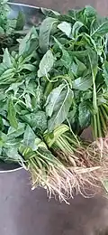 Un légume herbacé de couleur verte très consommé par les maraîchers, il peut se préparer avec de la viande, du poisson ou des champignons en sauté. L'amarante douce de son nom français est très riche en protéines, plus particulièrement en lysine. Elle agit sur le cerveau en stimulant la mémoire. Cette plante participe également à prévenir le risque diabète et lutte contre le mauvais cholestérol[16].