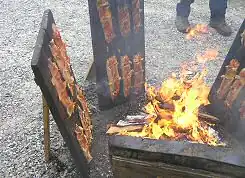 - Bull roast : c'est une spécialité d'été du Maryland pour les fêtes avec un grand nombre de personnes. Cette tradition remonte à la fin du XVIIe siècle en Angleterre[14]. Tout d'abord, une grande fosse est creusée dans le sol et remplie de bois de pommier, puis le feu est allumé. Quand il y a suffisamment de braises, on y fait rôtir lentement à la broche pendant douze heures un taureau entier dont on a ôté la tête et les pattes et dont la chair a été frottée d'une grande quantité d'épices. Il est servi avec de la salade de pommes de terre et de la bière froide.