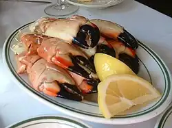 - Bar rayé grillé (grilled striped bass) : ce mets se trouve tout le long de la côte est des États-Unis. Le bar rayé est similaire au bar européen mais la préparation varie en fonction de l'endroit. C'est un mets très populaire lors des réunions de famille[26],[27],[28].
