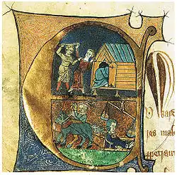La viande est plus associée au statut social (nourriture plus prestigieuse) et à sa symbolique religieuse qu'à son coût[note 3], [ext 10], [7]. Le porc est l'élevage type dans les monastères[8], la chèvre ainsi que le cheval ont, dans la boucherie, un statut particulier (Charte de Mirepoix (1303))[9]. Le gibier par interdit de chasse ne se trouve que sur les tables de la noblesse à la fin de l'époque médiévale. Les viandes les plus répandues sont le poulet et les autres volailles, le porc, tandis que le bœuf, qui demande plus d'investissement, est plus présent au Haut Moyen Âge que précédemment, en faisant l'objet d'une sélection pour obtenir des bêtes plus fortes et plus charnues[10]. La morue et le hareng sont incontournables pour les régions littorales et ils peuvent être transportés vers l'intérieur des terres s'ils sont séchés, fumés ou salés. Une grande variété de poissons de rivière est également consommée (et braconnée).