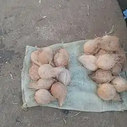 Une palette de gâteaux et fritures collectivement appelés mofo ([ˈmuf], signifiant « pain ») est disponible dans les kiosques des villes et villages de Madagascar[69]. Le plus courant est le mofo gasy, signifiant « pain malgache », à base de pâte de farine de riz sucrée versée dans des moules circulaires graissés et cuits sur charbon de bois. Le mofo gasy est un petit déjeuner populaire et est souvent consommé avec du café, également vendu en kiosque[70]. Dans les zones côtières ce mofo peut être fait de lait de coco et est appelé mokary vary