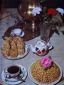 La cuisine tatare possède de nombreuses variétés de confiseries, servies habituellement avec le thé : çelpek, qatlama, qoş tele, lawaş, paştet, çäkçäk…