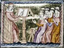 - En faculté des Arts, la leçon commence par la lecture et le commentaire du texte (lectio) ; puis les étudiants discutent la thèse du texte (disputatio) ; enfin, le maître expose une position définitive sur le texte (determinatio).