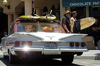 La surf music est un genre de musique popularisée dans les années 1960, associée à la culture du surf en Californie, avec en particulier The Beach Boys (Surfin' U.S.A.[10], Surfer Girl[11], Surfin' Safari, California Girls[12]...), Dick Dale, Jan and Dean, The Surfaris, ou The Ventures...