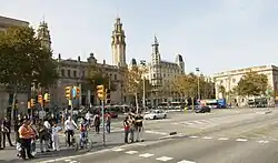 Vue de la Via Laietana toute proche de l'arrivée de la course