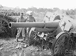 Après le débarquement à l'est de Lae, la 7e division, s'étant concentrée à Port Moresby, est transportée par avion à Nadzab après sa capture par le 503e régiment d'infanterie parachutiste américain (503e PIR) le 5 septembre. Chargé d'avancer depuis le nord-ouest, son rôle principal est de servir de tampon entre la 9e division et les renforts japonais qui pourraient tenter de descendre à travers les vallées de Markham et de Ramu[58]. L'avancée initiale de la 9e division le long de la côte rencontre une résistance limitée, les éléments japonais les plus importants étant principalement de la taille d'une compagnie. En réponse au débarquement à Nadzab, le commandement japonais ordonne à la 51e division du lieutenant-général Hidemitsu Nakano de renforcer la garnison fortement retranchée de Ryoichi Shoge à Lae, se repliant de la région de Salamaua[59]. La zone est parsemée de nombreuses petites criques et rivières à l'ouest du Buso, y compris quatre rivières principales et sur la route intérieure. Le 2/23e bataillon d'infanterie, après avoir traversé le Buso le premier jour, commence une péripétie de ce que l'auteur Joseph Morgan décrit comme « des traversées de rivière perfides et des efforts difficiles ... à travers la jungle »[60].