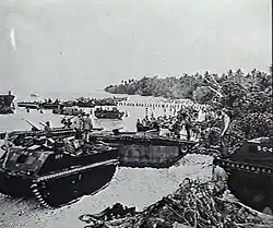 4 000 US Marines de la 4e division des Marines débarquèrent sur l'île le sans rencontrer d'opposition, l'île n'était occupée que par une poignée de Japonais qui s’enfuirent par canoë le pour tenter de rejoindre Kavieng. Ces derniers furent interceptés 4 jours plus tard par un destroyer américain qui coula l’embarcation et ses occupants qui avaient commencé à tirer à coups de fusil sur le navire[1]. Les troupes du génie militaire de l'US Navy, les Seabees, arrivèrent dans la zone à partir du et y entamèrent des travaux qui durèrent jusqu'en . Il fut par la suite construit sur l'île deux aérodromes capables à eux deux d'accueillir 300 chasseurs ou bombardiers, des installations portuaires, trois hôpitaux pouvant prendre en charge en tout plus de 400 patients ainsi que des baraquements, des entrepôts et des hangars[2].