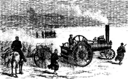 La « locomotive routière » refit son apparition en France en novembre 1865, avec la construction d'un nouvel engin par les ateliers Lotz, constructeur à Nantes, qui est présenté à Paris au Champ de Mars. Les perfectionnements rapides de ce nouvel engin popularisèrent la locomotion à vapeur, le gouvernement prenant dès le , un arrêté concernant la circulation des locomotives sur les routes ordinaires. L'usage de tracteurs à vapeur commença également à se généraliser dans l'agriculture et l'industrie pour le déplacement de charges lourdes notamment[4].« Fait assez singulier, c’est pour le service des transports militaires que les locomobiles routières sont entrées dans la pratique [...] Au moment d’une mobilisation générale, il peut se faire qu’on ne trouve pas assez de chevaux pour transporter tout le matériel de guerre sur le théâtre des opérations stratégiques. Les locomotives routières sont susceptibles, dans ce cas, de rendre de grands services, surtout dans les pays munis de bonnes routes [..] En France, des expériences furent faites, en avril 1876, sur une machine à vapeur construite par MM. Aveling et Porter, de la force de 8 chevaux-vapeur. Cette machine remorqua, du fort de Montrouge à celui de Châtillon, avec une vitesse de 6 à 8 kilomètres à l’heure, quatre pièces de canon de seize, de marine, représentant un poids total de 22 tonnes. À la suite de cette expérience favorable, on a mis en service, dans quelques établissements d’artillerie, un certain nombre de locomotives routières, dont quelques-unes ont été achetées aux maisons anglaises Aveling et Porter, mais dont le plus grand nombre a été construit à Paris, par l’usine Cail. En temps de paix, ces machines sont journellement utilisées dans nos places fortes, pour le transport des lourds fardeaux, et elles ont été d’un grand secours pour l’armement des forts de Paris. En temps de guerre, on les utiliserait, soit à la suite des armées, pour le transport des approvisionnements de deuxième ligne, soit dans les parcs de siège, ou dans les places fortifiées[5] ». Évoquant l'expérience de trains routiers britanniques pendant la seconde guerre des Boers, Le Monde Moderne rapporte en 1902: « on n'a pas attendu [..] pour expérimenter, en France, des machines de ce genre. Depuis de longues années déjà le service de l'artillerie s'en est servi pour les mouvements de matériel dans les arsenaux, et, si la traction mécanique ne s'est pas développée davantage et plus rapidement, c'est peut être parce qu'on reconnaissait à ces machines certains défauts qui n'ont pas disparu entièrement des types anglais. Peu à peu, cependant, chez nous, on a transformé la locomotive routière, lourde, massive, peu maniable, pour adopter des types de tracteurs aussi souples qu'une automobile ordinaire, aussi faciles à manœuvrer. Depuis 1895, notamment, le service de l'artillerie poursuit avec le train Scotte des expériences sans doute concluantes, puisqu'un modèle a été arrêté, que l'on peut voir circuler régulièrement pour desservie l' arsenal de Vincennes [..] Quelle serait la conséquence de l'adoption de ce genre de traction pour les transports de l'armée ? Comparons. Un de nos habituels convois administratifs, transportant 4 jours de vivres, pour 164 voitures, exige 442 chevaux et 314 hommes de troupe, sans compter les 6 officiers nécessaires au commandement d'un aussi gros détachement. Douze tracteurs feraient la même besogne et supprimeraient radicalement toute cette cavalerie. D'autre part, 50 hommes suffiraient à la conduite du convoi[6] ».
