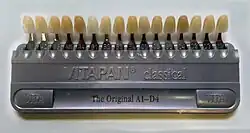 - ↑ Herekar M, Mangalvedhekar M et Fernandes A, « The Most Prevalent Tooth Shade in a Particular Population: A survey », Journal of the Indian Dental Association, vol. 4, no 12, .