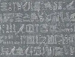 - Un 3e texte partiellement complet avec des lignes de hiéroglyphes (Actuellement exposée au Louvre).