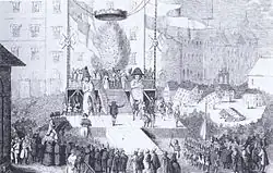 Les deux défilés de 1839 et de 1840 faisant suite au tout premier cortège étaient également liés au niveau de leur thème. En 1838 le Seigneur Carnaval était donc sacré, en 1839, on fêtait son mariage pour enfin célébrer la naissance de son fils Hanswurst l’année suivante. À partir de 1842, le défilé du lundi des Roses reflète des problématiques plus actuelles dans un contexte politique agité à l’époque du Vormarz. Le Carnaval de Mayence, encore très récent, devient alors politique ; les rapports entre les organisateurs membres de la MCV et les autorités étaient jusque-là plutôt bons, mais c’est l’arrivée de nouveaux participants engagés comme Ludwig Kalisch, Franz Heinrich Zitz (Président du MCV à partir de 1843) ou encore Eduard Reis qui a donné naissance au Carnaval politique et littéraire de Mayence. En 1845, le défilé du lundi des Roses est pour la première fois dans le viseur des autorités de Darmstadt. Le ministre de l’intérieur du Grand Duché de Hesse-Darmstadt s’est donc vu contraint de « mettre en place des activités officielles en étant plus vigilant ». En 1846 lors du défilé du lundi des Roses, on peut assister à l’incinération symbolique de la censure sur la place du marché de Mayence. Malgré cela, les relations entre le MCV qui organise le défilé et les autorités locales de Mayence sont au beau fixe. Grâce à un fort engagement et à un ensemble de tactiques judicieuses, le commissaire provincial de Lichtenberg ainsi que le maire en exercice de Mayence, Nikolaus Nack, ont pu éviter l’interdiction du MCV et ainsi du lundi des Roses, prônée par la cour grand-ducale de Darmstadt. Malgré cela, les relations politiques dans le Sud-Ouest de l’Allemagne en 1848/1849 et dans les années qui ont suivi ont obligé les autorités à annuler le carnaval de Mayence et le défilé du lundi des Roses. Pendant ces quelques années, le MCV n’organise que quelques « réunions » et aucun lundi des Roses n’est célébré dans sa totalité jusqu’en 1855.