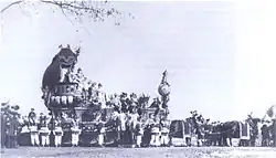 Deux fabricants de carrosses mayençais, le conseil municipal ainsi que les autorités militaires vont prêter 100 coches. De la milice folle de l’année précédente avait émergé la Mainzer Ranzengarde composée de 37 soldats menés par le Général Johann Maria Kertell, qui n’apparaissaient que vêtus des uniformes caractéristiques de l’époque du prince électeur Frédéric-Charles Joseph d'Erthal. La Garde ainsi que la « Zwergen-Compagnie » ou Compagnie des nains, composée de jeunes enfants déguisés, se chargeaient de l’escorte « militaire » du défilé et faisaient office de garde rapprochée du Seigneur Carnaval.
