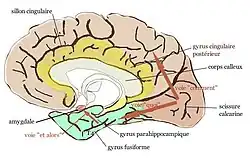 - Une voie affective et inconsciente, donnant une réponse affective à des stimulus familiers mis en évidence par une activation du système nerveux autonome (augmentation du rythme cardiaque, sudation, mydriase).