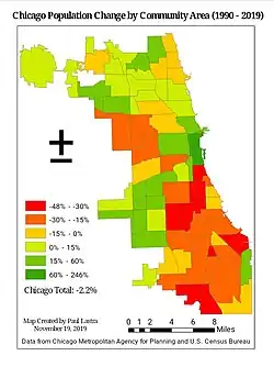 - ↑ « Chicago (city), Illinois », State & County QuickFacts, United States Census Bureau.