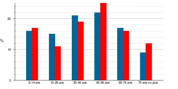 La population a vieilli entre 1999 et 2009, le taux des personnes de 60 ans et plus passant de 26 % à 28 %, à l'instar des populations du département et de la France qui sont aussi passées respectivement de 20 à 23 % pour le Département et de 20 à 23 % pour la France métropolitaine.