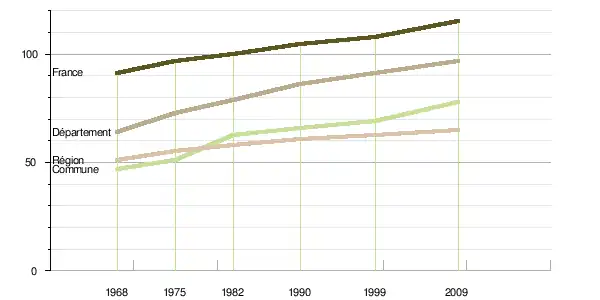 | 1968 | 1975 | 1982 | 1990 | 1999 | 2009 | Évolution annuelle moyenne sur la période 1968-2009 (%) | ||