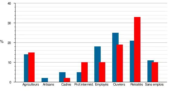 | Ouvriers | 36 | 18,8 | 44 | 25 | 15,7 | 17,3 | 13,5 | 14,9 |