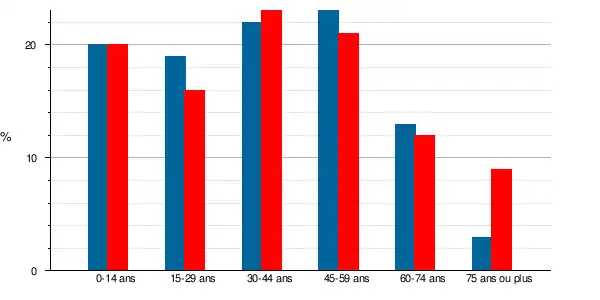 La population a vieilli entre 1999 et 2009, le taux des personnes de 60 ans et plus passant de 16 % à 21 %, à l'instar des populations du département et de la France qui sont aussi passées respectivement de 20 à 23 % pour le Département et de 20 à 23 % pour la France métropolitaine.