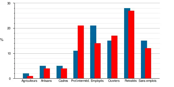 | Ouvriers | 175 | 17,4 | 128 | 14,5 | 15,7 | 17,3 | 13,5 | 14,9 |