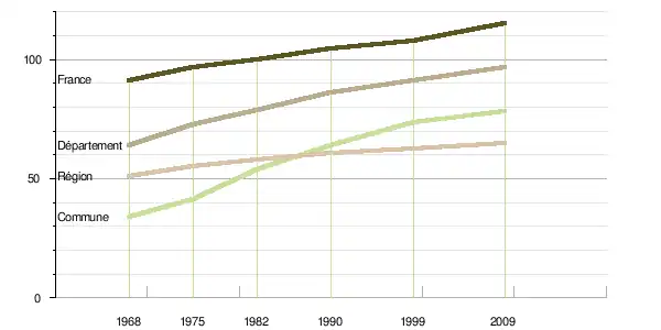 | 1968 | 1975 | 1982 | 1990 | 1999 | 2009 | Évolution annuelle moyenne sur la période 1968-2009 (%) | ||