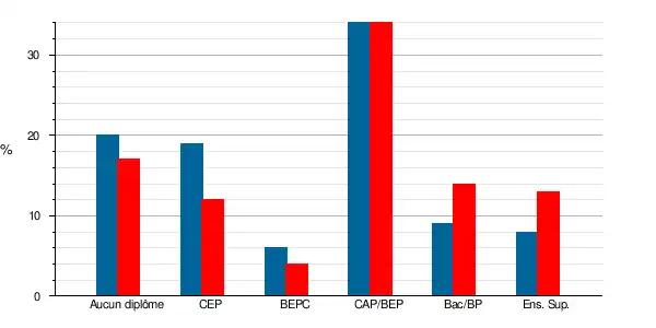 | Titulaires du certificat d'études primaires | 116 | 12,4 % | 157 | 19,2 % | 12,4 | 19 | 11,1 | 17,6 |