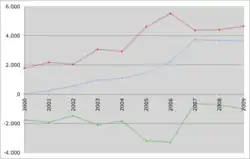 | 2000 | 1 401 250 | 13 067 | 9,4 | 1,36 | 18 403 | 13,2 | - 3,8 | −3 194 | - 6,1 |